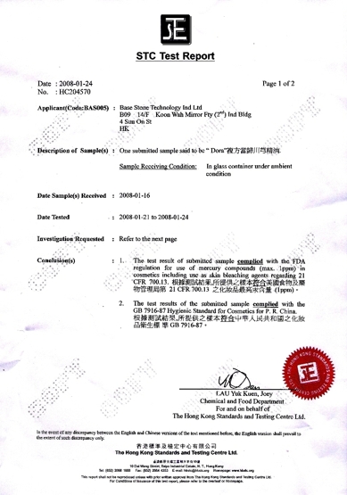 “STC Test Report”, 符合重金屬, 微生物的標準, 多年來“補氣活血按摩精油